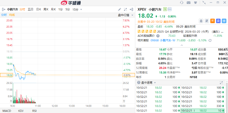 華盛資訊3月20日訊,美股熱門中概股齊跌,金山雲大跌近11%,禾賽跌超8%,小鵬汽車績後跌近6%,蔚來跌超5%,嗶哩嗶哩跌近3%,百度、京東跌約2%;霸王茶姬逆勢漲近1%。