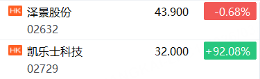 新股方面:凱樂士科技上市首日漲超92%,澤景股份跌0.68%。