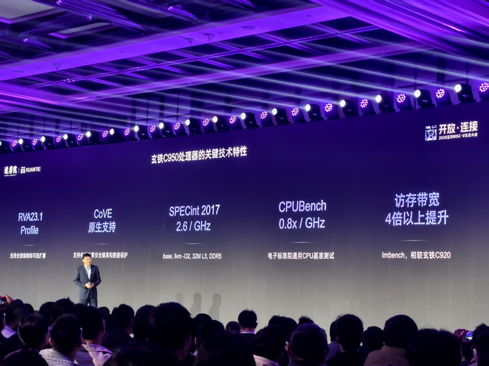 3月24日, 在阿里達摩院2026玄鐵RISC-V生態大會上,新一代旗艦處理器玄鐵C950正式發佈。