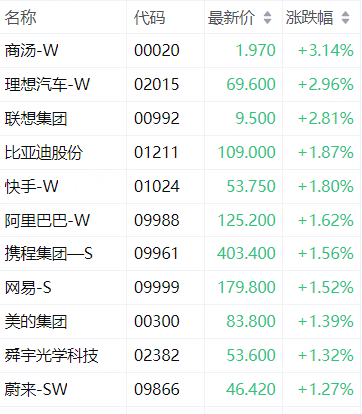 科指成分股中,商湯-W漲3.14%,理想汽車-W漲2.96%,聯想集團漲2.81%,比亞迪股份漲1.87%,小米集團-W跌1.96%。