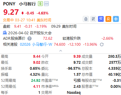 華盛資訊3月27日訊,熱門中概股齊走低,小馬智行跌近5%,禾賽、金山雲跌超4%,霸王茶姬、蔚來跌約2%,阿里巴巴、嗶哩嗶哩、臺積電跌約1%,理想汽車逆勢漲近1%。