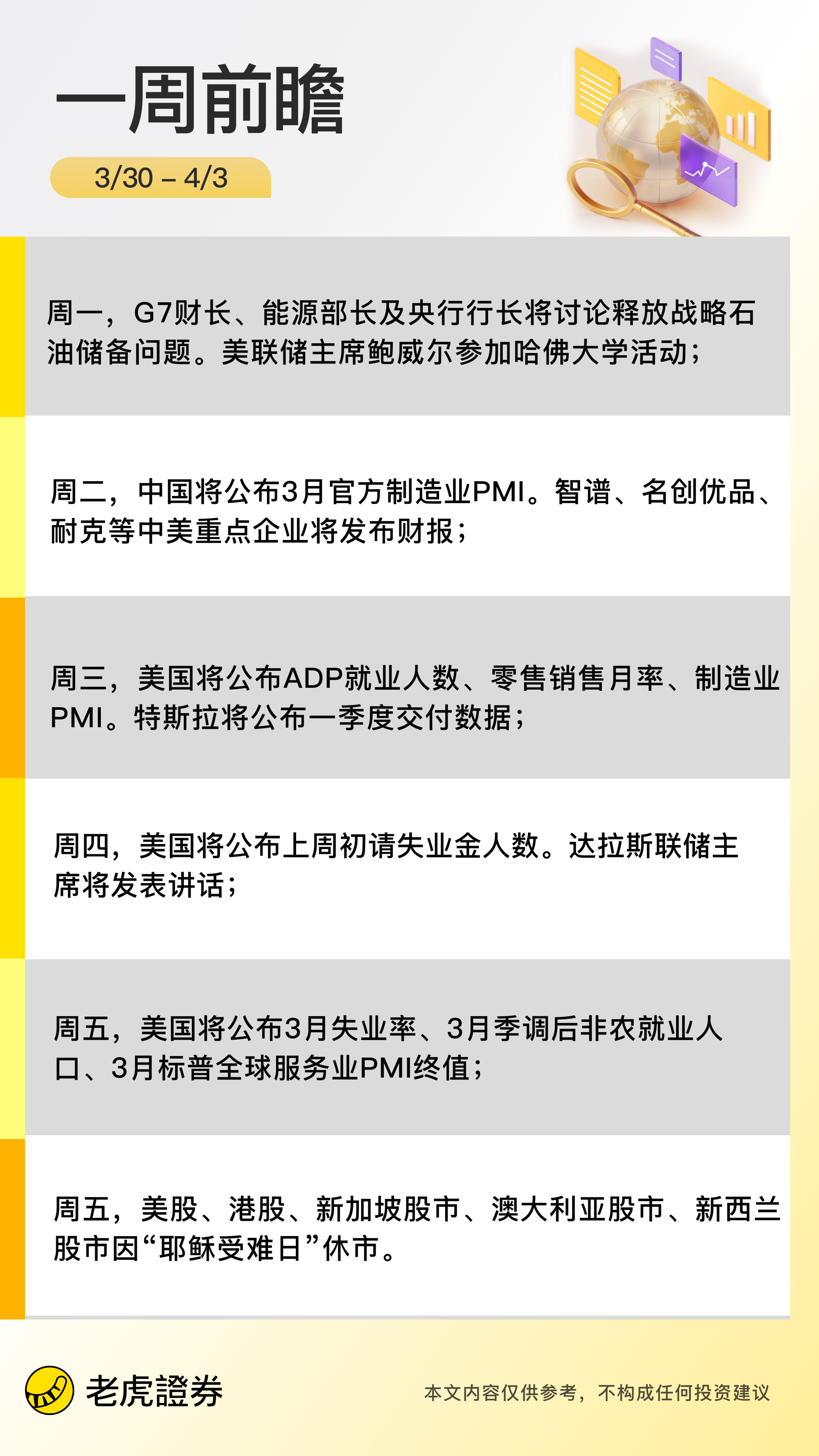 經濟數據方面,中國3月官方製造業PMI於9:30公佈;美國2月JOLTs職位空缺於22:00公佈。
