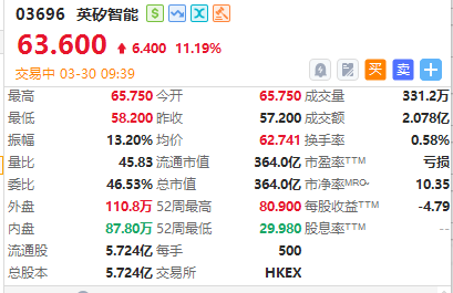 英矽智能( $03696.HK )今早逆勢大漲,盤中一度漲近15%,報65.75港元,現漲超11%。消息面上,英矽智能宣佈與禮來達成藥物發現合作,這項合作將利用英矽智能的AI引擎加速多個治療領域中新型療法的發現與開發。