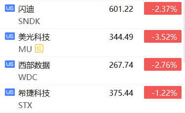 美股異動 | 存儲概念股走低,美光科技跌超3%
