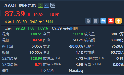 華盛資訊3月30日訊,光通信、存儲概念股集體回調,應用光電跌超11%,Ciena跌超6%,Lumentum控股跌超5%,康寧跌超4%;