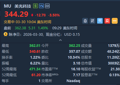 美光科技、西部數據跌超3%,Sandisk跌超2%。