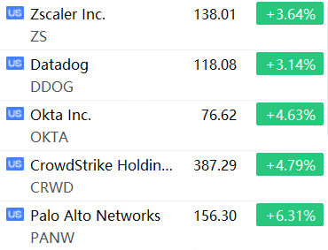 3月30日,美股網絡安全概念股上漲,Palo Alto Networks漲超6%,CrowdStrike、Okta漲超4%,Datadog、Zscaler漲超3%。