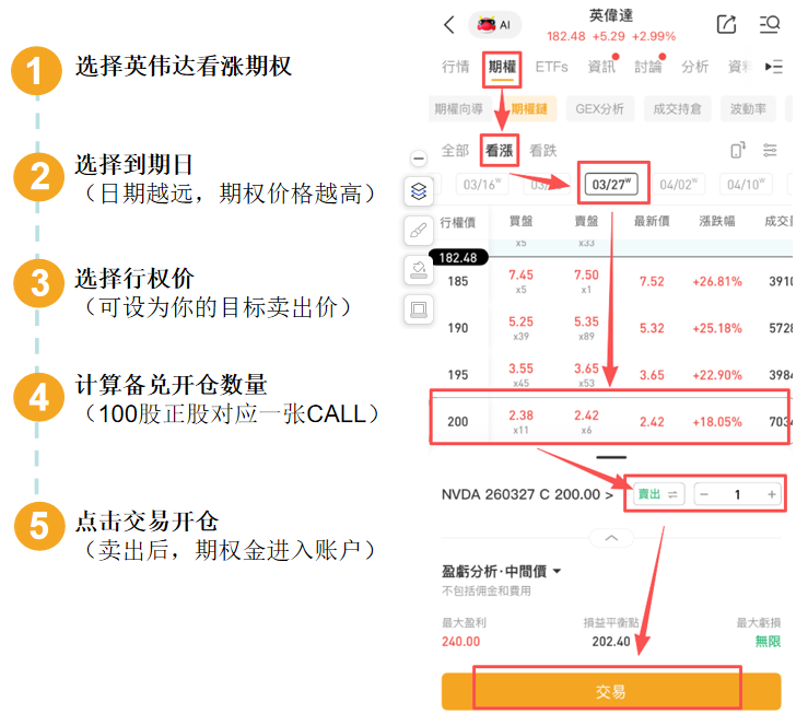 2、備兌看漲:賣出英偉達看漲期權