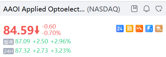 光通信、存儲概念延續漲勢,閃迪夜盤升逾2%、 Applied Optoelectronics Inc. 升逾3%, 美光科技升逾1%, Lumentum Holdings Inc. 升逾2%。