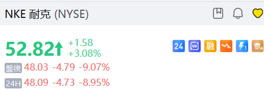 4月1日週三, 耐克 績後夜盤跌近9%,第三財季業績超預期,但預計第四財季銷售將出現下滑。