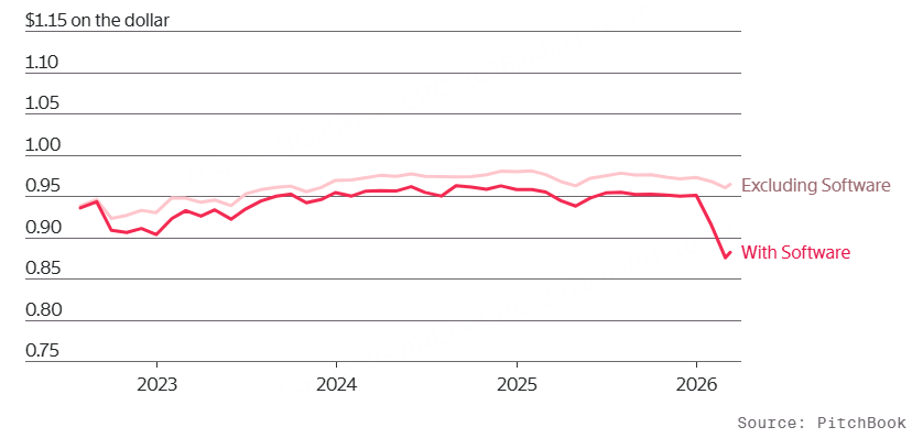數據顯示,投資者爲軟件公司銀團貸款支付的價格在3月份同比下降近7%,而同期其他行業的同類貸款價格僅微幅下跌。PitchBook全球信貸與私募股權研究主管Marina Lukatsky表示,這一明顯差異表明“市場整體情緒已轉向規避風險”,軟件企業未來再融資將面臨更高成本。