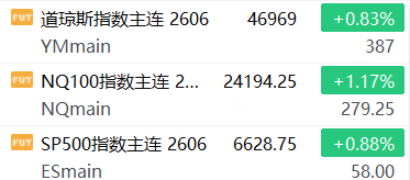 4月1日,美股三大股指期貨上漲,截止發稿,道指期貨漲0.83%,納指期貨漲1.17%,標普500指數期貨漲0.88%。