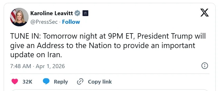 以下是白宮新聞祕書卡羅琳·萊維特宣佈特朗普講話的方式:“重要更新”——她的原話。