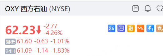 國際油價下跌,石油股西方石油跌1.8%,康菲石油、埃克森美孚跌逾1%。