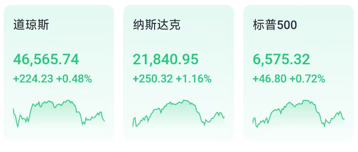 美股收盤:三大指數連漲,納指漲幅超1%。科技股表現強勢,能源股承壓。