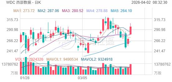 存儲概念繼續反彈。西部數據漲超10%,閃迪漲9.03%,美光科技大漲8.88%,希捷科技漲8%。