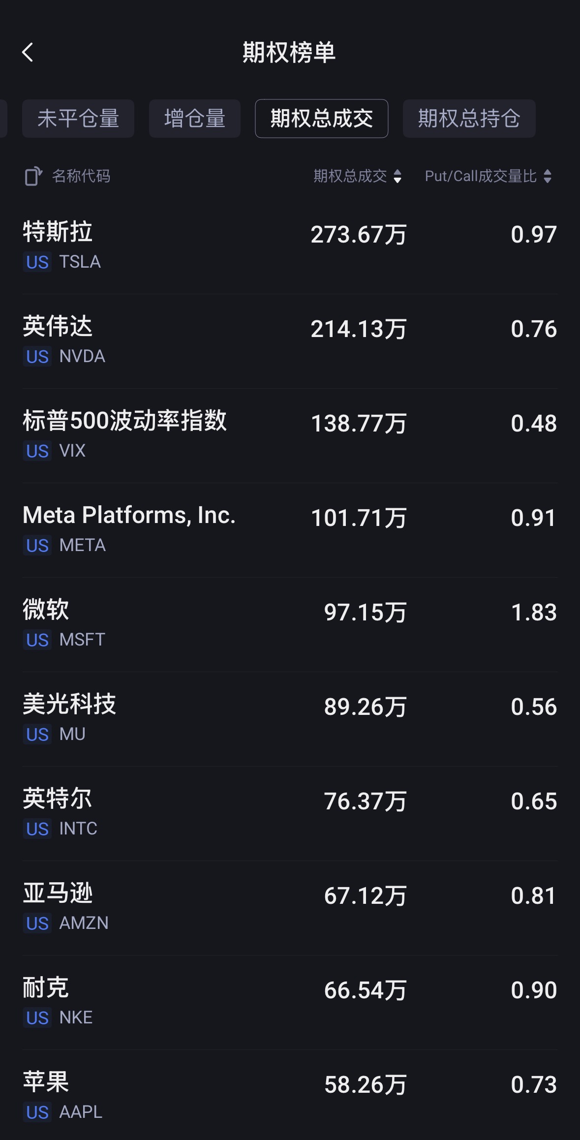期權市場總成交量5916.54萬張合約,環比前一交易日(5911.36萬張合約)小幅上漲,且高於90日均量(5866.72萬張合約),其中看漲期權佔比50%。