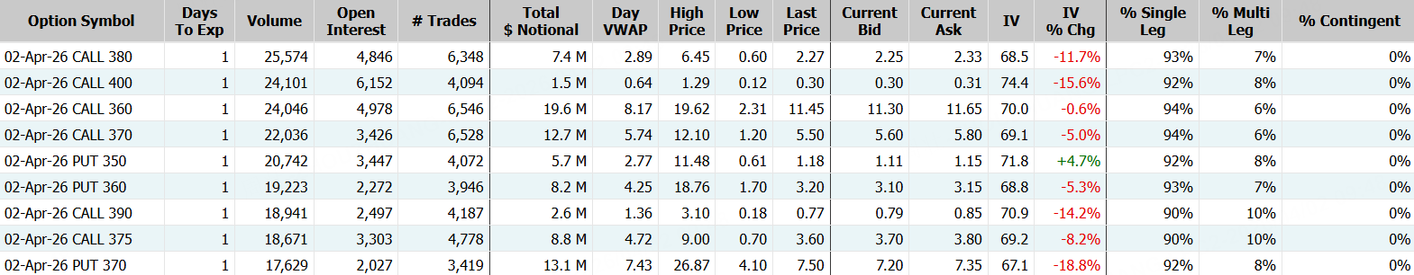 期權方面,美光科技當日成交89.02萬張,較90日均量放大逾2倍,看漲期權佔比攀升至64.2%,其中於4月2日到期的380美元行使價的看漲期權成交居前,成交超2.5萬張。