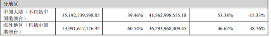 在完成業務結構切換之際,陽光電源也逐漸將重心壓向海外市場。2022-2024年,中國大陸營收佔比保持在52%-54%。2025年該格局被徹底打破,海外營收佔比躍升至60.54%,中國大陸則相應萎縮至39.46%。