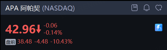 能源股盤前重挫。 阿帕契 大跌超10%, 西方石油 跌超8%,康菲石油、埃克森美孚跌超6%,雪佛龍跌超5%。國際油價日內維持兩位數跌幅。