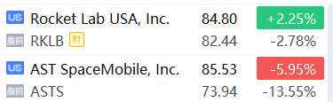 太空概念股盤前走低,AST SpaceMobile跌超13%,Rocket Lab跌近3%;