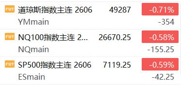 4月20日,美股三大股指期貨下跌,截止發稿,道指期貨跌0.71%,納指期貨跌0.58%,標普500指數期貨跌0.59%。