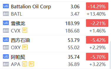 美股石油股盤前上漲,Battalion Oil漲超13%,阿帕契漲超3%,西方石油漲超2%,墨菲石油、雪佛龍漲超1%;