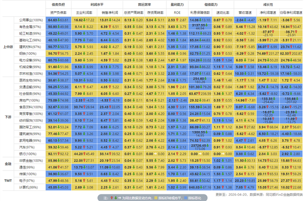 行業財務指標同比變動