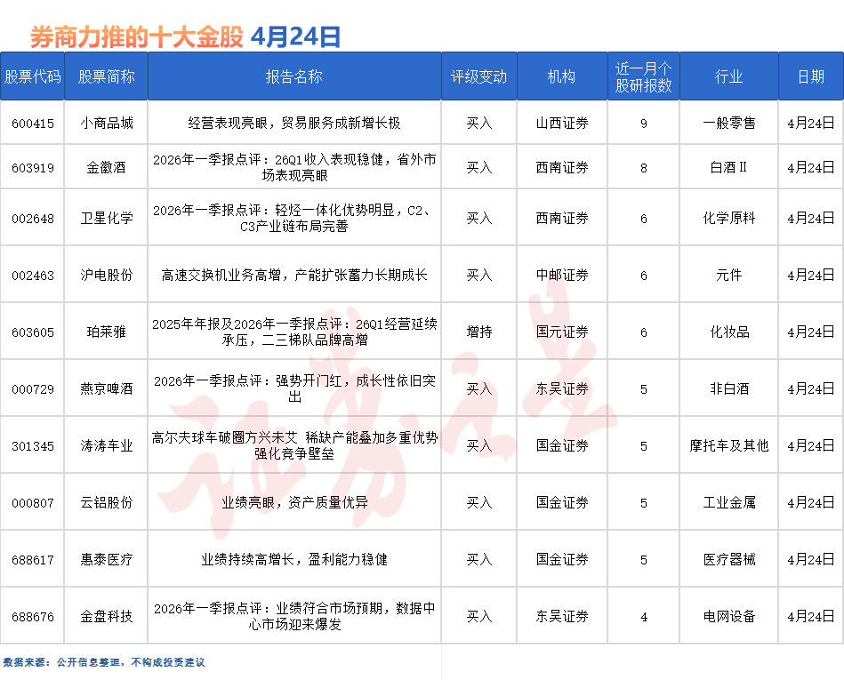 除了上述個股外,還有滬電股份、珀萊雅、燕京啤酒、濤濤車業、雲鋁股份、惠泰醫療、金盤科技等多股備受券商關注。